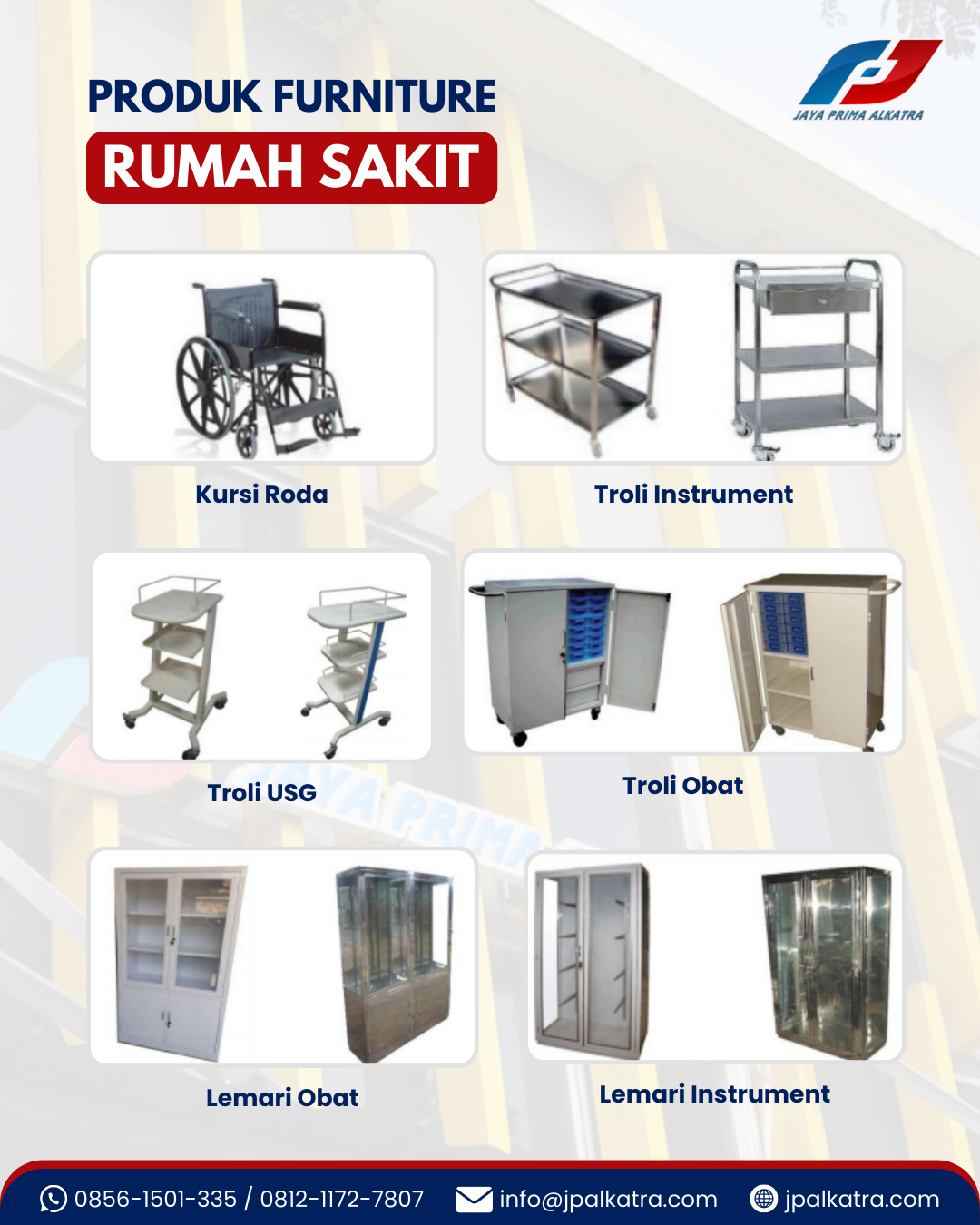 Percayakan kebutuhan furniture medis Anda kepada PT Jaya Prima Alkatra. Kami siap membantu Anda menciptakan fasilitas kesehatan yang modern dan nyaman.